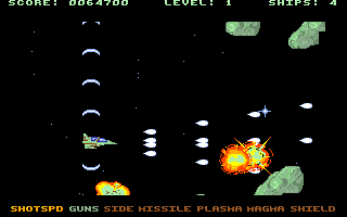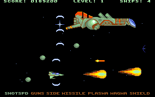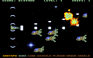 The animation never slows down, not even when there are lots of sprites on screen. Just a momentary lapse in concentration and your space battle cruiser will be blasted into oblivion by the fiercest alien fighters in any Apple IIGS arcade game.